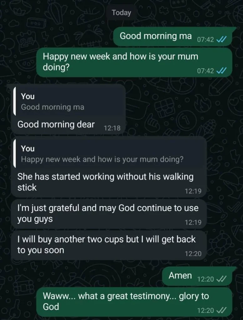 "My mother who has been bedridden for 2 and half years is fully back on her feet after taking only 3 bottles of the Gudugudu Herbal Capsules. We can't contain our joy"